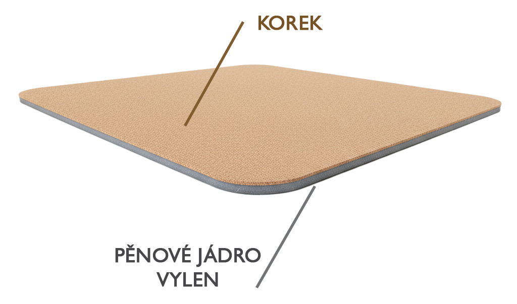 Povrch z pravého korku dodává nástěnce teplý a přirozený vzhled. Uvnitř se ale skrývá lehké a odolné pěnové jádro, díky kterému špendlíky snadno proniknou dovnitř, pevně drží a vpichy zůstávají nenápadné.