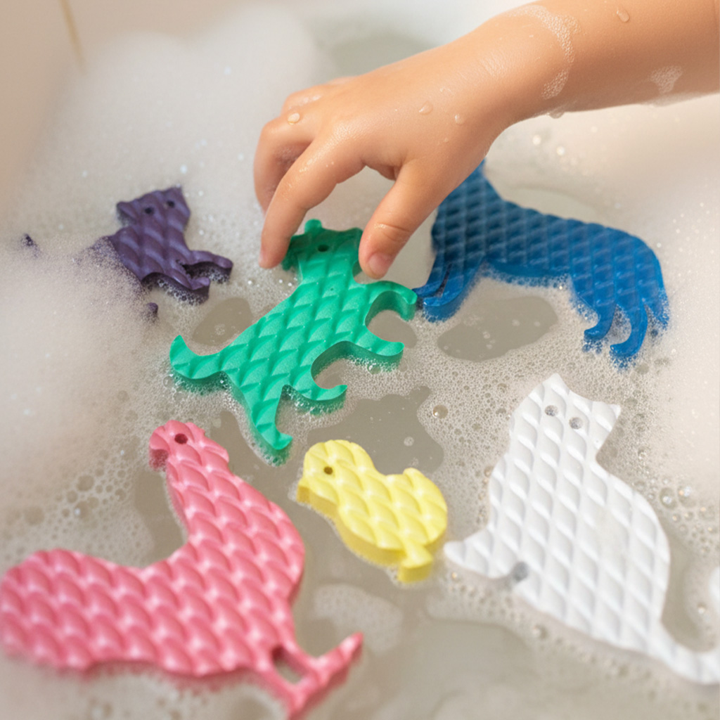 Pěnová zvířátka milují vodu! Jsou vyrobená z perfektního nenasákavého materiálu, proto krásně plují po hladině. Stačí je namočit a lehce je přilepíte na okraj vany nebo na kachlíčky a Vaše dítě má ve vaně kamarády!