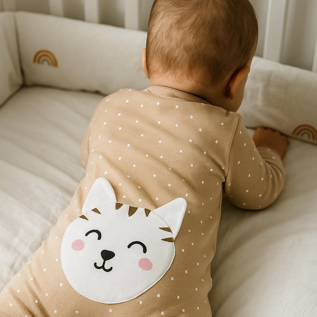 Obousměrný zip je zakončený až na nohavici, takže miminko přebalíte pohodlně a jednoduše kdykoli během noci, aniž byste ho museli celé vyslíkat.