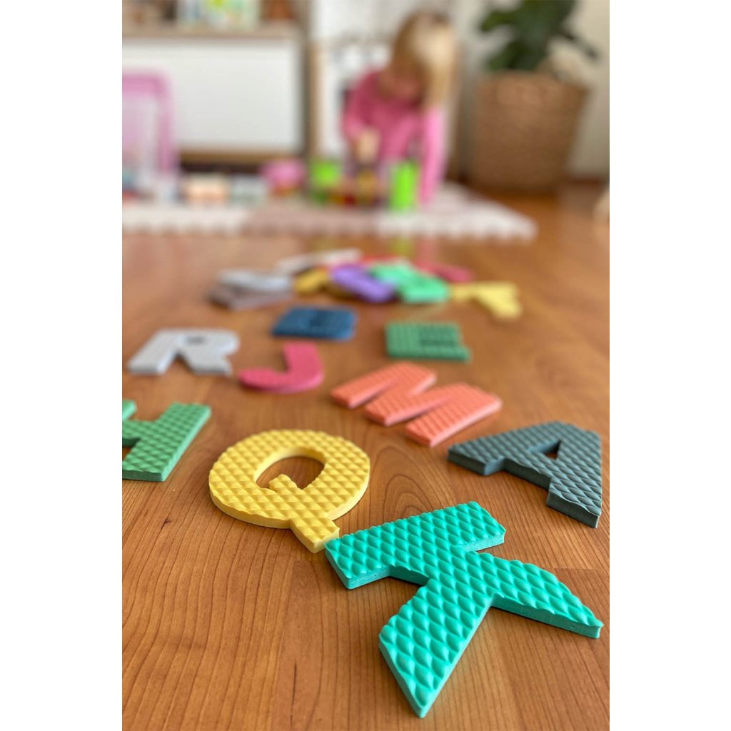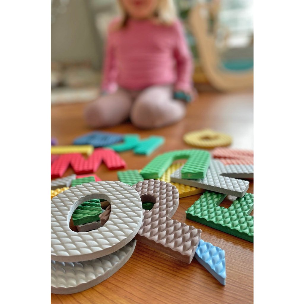 PĚNOVÁ ABECEDA je vyrobena s ohledem na potřeby malých dětí. Z toho důvodu jsme zvolili velikost zhruba 9,5 cm na výšku a tloušťku 1 cm, díky které se písmenka dětem dobře drží.